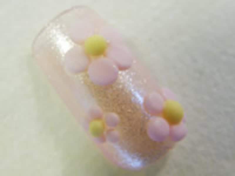 3Dネイルアート、水玉模様だけでお花の形を作る