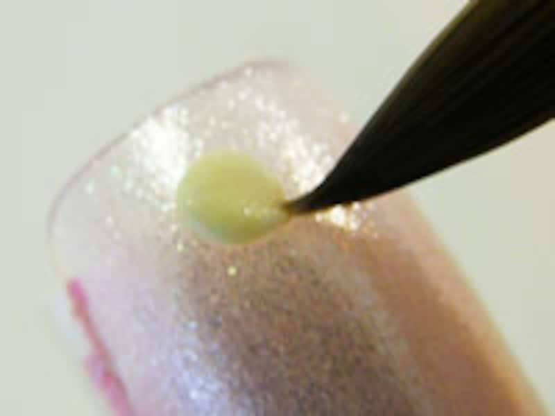 2.ミクスチャーから筆を離してキッチンペーパーで筆先を整えて下さい。そして置いたミクスチャーの中央に筆先で圧を加えて線を入れます。