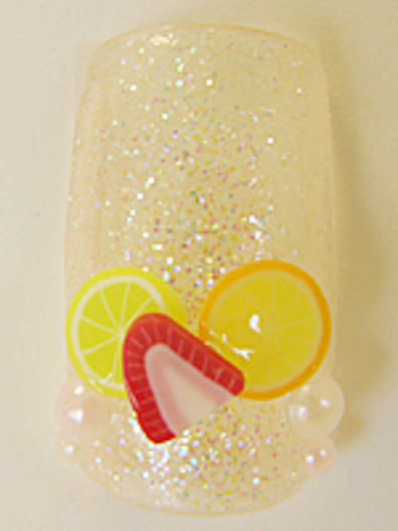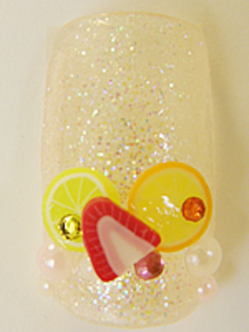 それではネイルアートをしていきましょう。フルーツパーツを使って深めのフレンチスタイルのデザインにします。