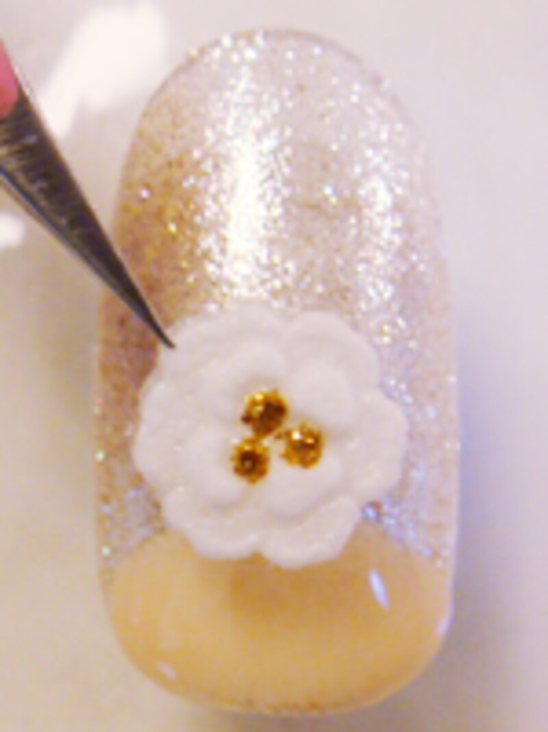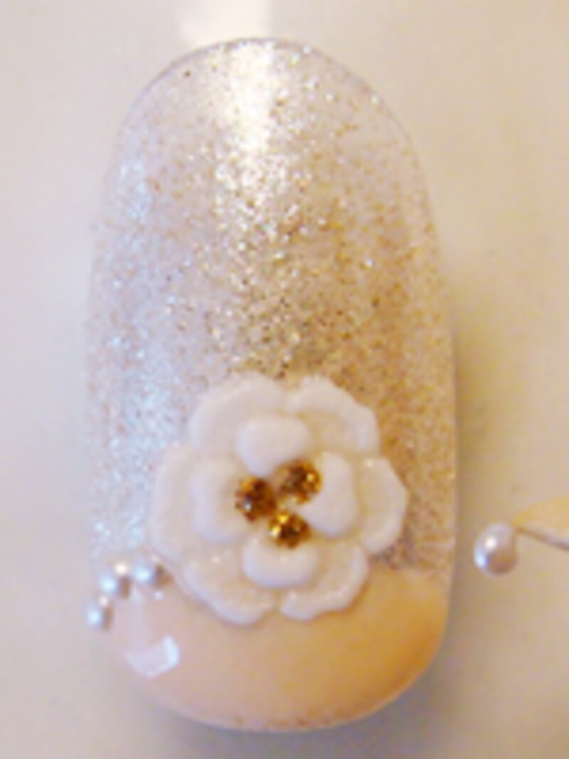 ネイルアートの主役はネイルシール!3Dタイプで繊細な模様が美しいカメリアのデザインを使います。