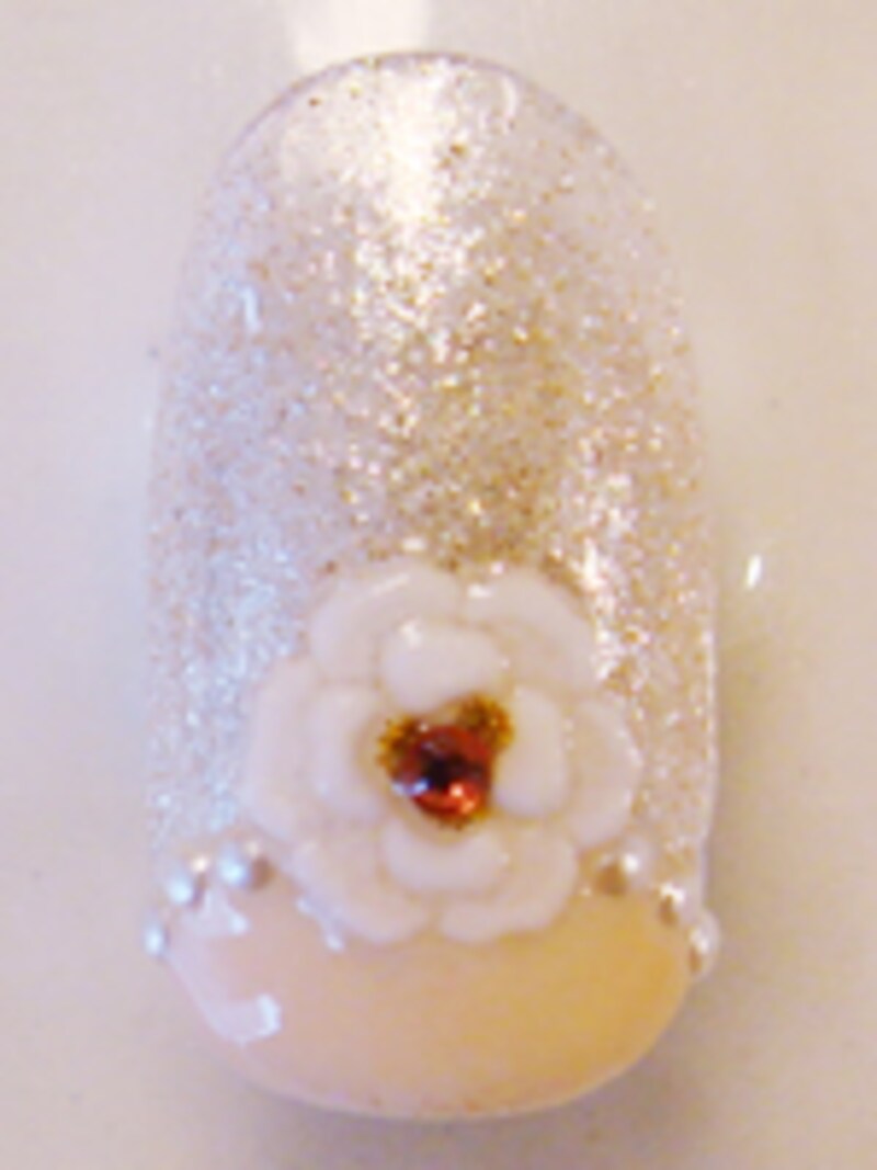 | 深めのフレンチにお花のモチーフシールを組合わせたキュートなデザイン。 |