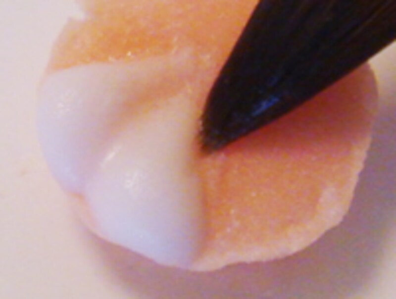 5. 裏返した上に、ホワイトのパウダーで生クリームのような感じで形を作っていきます。