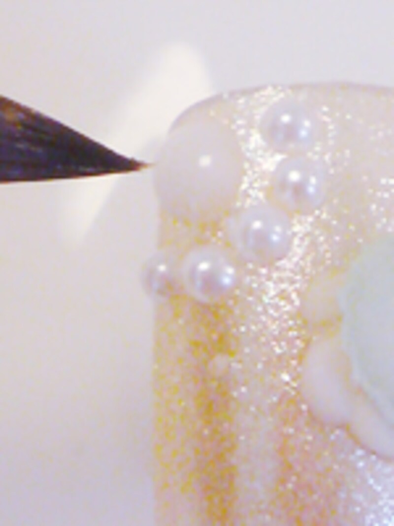 マカロンでデコレート!ネイルアートの完成例 マカロンが作れるようになったら、ネイルアートにさっそくチャレンジ!レシピをご紹介します。 1. ベースのカラーを2度塗りし、乾いた後に3Dアートをします。2ページ目でご紹介した生クリームを作ります。 2. 爪の大きさを考えて作りましょう。あらかじめマカロンを別に作っておくことも忘れずに! 3. 出来上がったら接着用にミクスチャーを一つ置いて、マカロンをかぶせます。 4. 一つ目のマカロンが出来上がりました。 5. 続いて3Dアートがあまり得意ではない方の為に、パールを使ったマカロンのデコレーションをご紹介。パールストーンを画像のように並べます。 6. 円を描いたパールの中央に同じく接着用のミクスチャーを作ります。 7. こちらにもマカロンをかぶせて完成です。 いよいよ次のページでネイルアートの仕上げをご紹介します!続きをご覧ください! 前のページへ1234次のページへ