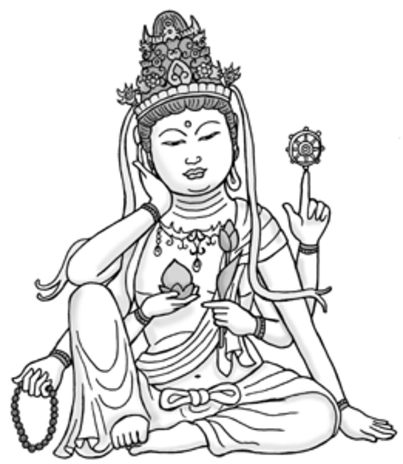 如意輪観音も、立てひざをしたセクシーポーズで人気です。手に持った如意宝珠は、どんな願いもかなえてくれる魔法の玉です。