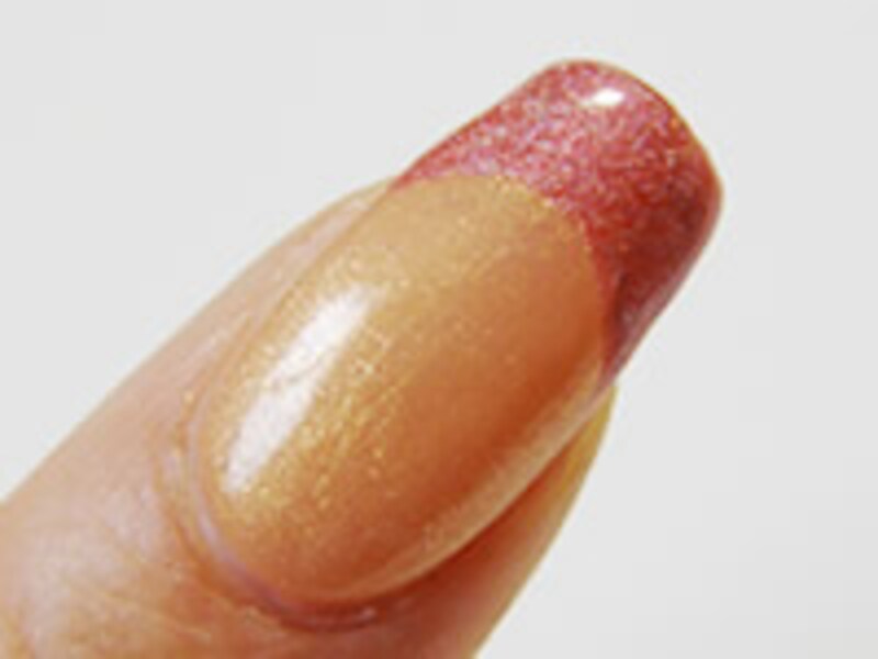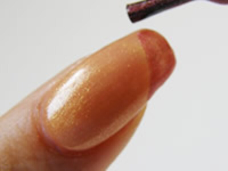 2色を使ってフレンチネイル ネイルエナメル各105円(税込み)販売店:ダイソー ベースカラーにはパールオレンジを使用します。フレンチ部分には大人っぽいローズピンクをチョイス。この2色を使ってフレンチネイルを作っていきましょう。 1. ベースコートを塗ります。 2. ベースカラーにするパールオレンジを2度塗りします。 3. フレンチを塗ります。フレンチの基本的な塗り方は「フレンチネイルは基本が勝負! 」をご参照下さい。 4. フレンチ部分も2度塗りしたら完成です。 あと残金100円です! お次は? さてここまででかかった費用は400円(税抜き)。予算はあと100円! 一体どんなネイルアートができるのか…。 次のページでは、このフレンチを飾るストーンアートをご紹介します! 前のページへ123次のページへ