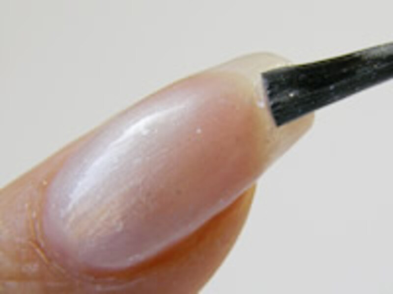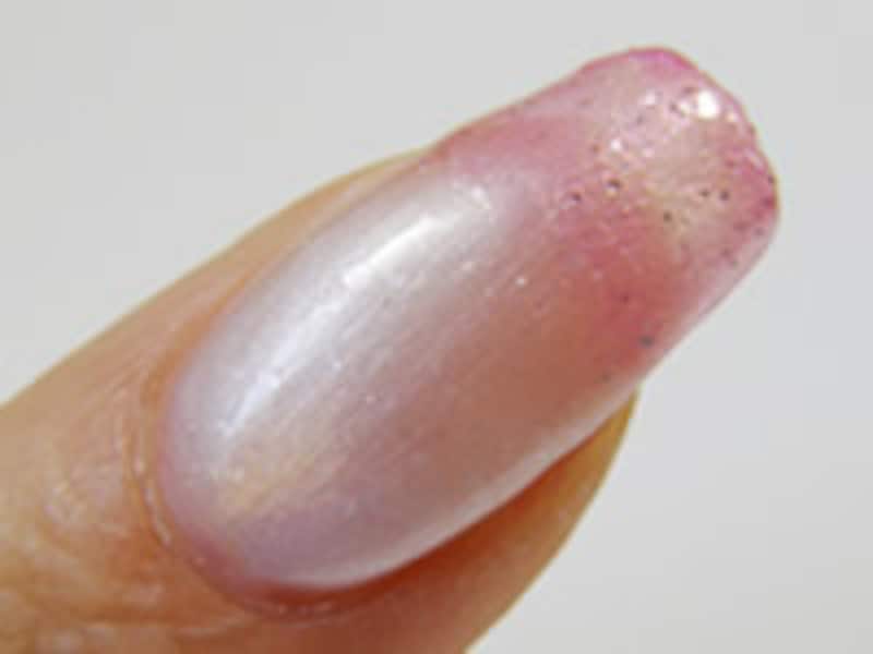 ベースカラーにはパール系のライトピンクを使用します。グラデーションをポリッシュで作るコツは、使うポリッシュが決め手になります。グラデーション部分には