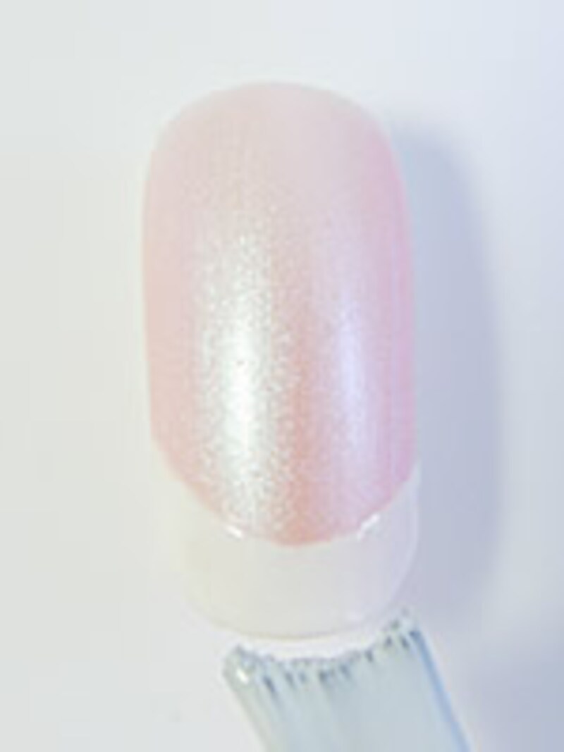 簡単でキレイにフレンチマニキュアが塗れるというカラー。ツヤ感あふれる輝きで持ちがよく、滑らかに爪に塗れるエナメル液。