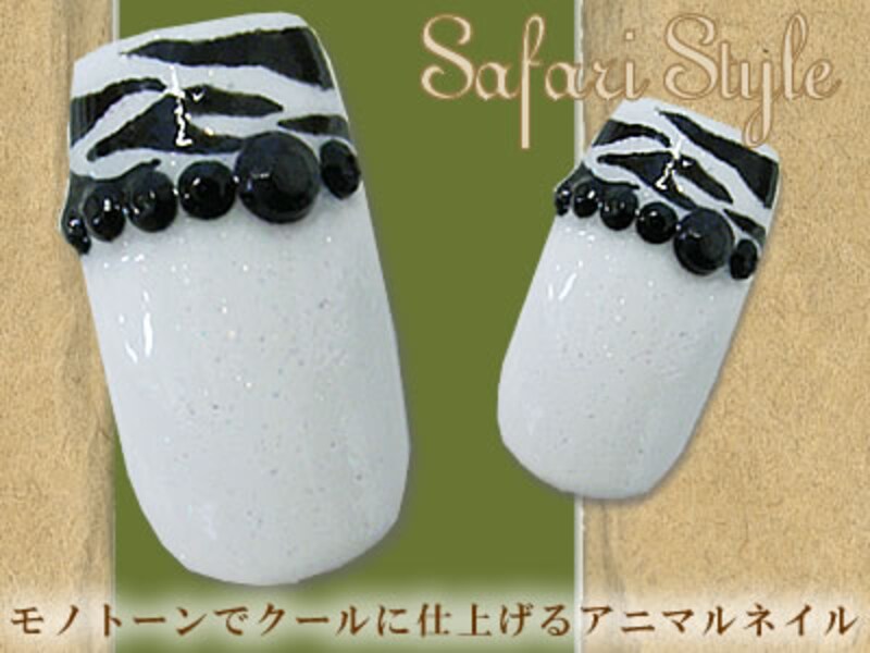 モノトーンでクールに決めるアニマルネイル
