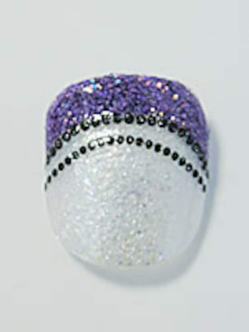 グリッターでダイヤ型に塗って周りをラインシールで縁取るだけの簡単アレンジ。ぺディキュアならこのくらい大胆なアートでもOK!