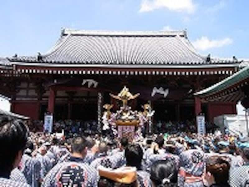 | 江戸の夏祭りのトップを切る浅草神社の三社祭り |