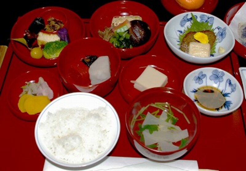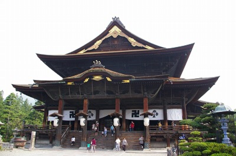 善光寺には39軒の宿坊があり、設備、料理ともによし。兄部坊では、浄土宗の伝統的な料理をアレンジした美しい料理が楽しめます。善光寺は、七年に一度のご開帳が終わって混雑が一段落した今が行き時!お朝事(本堂での朝のお勤め)を、ぜひ体験してみてください。