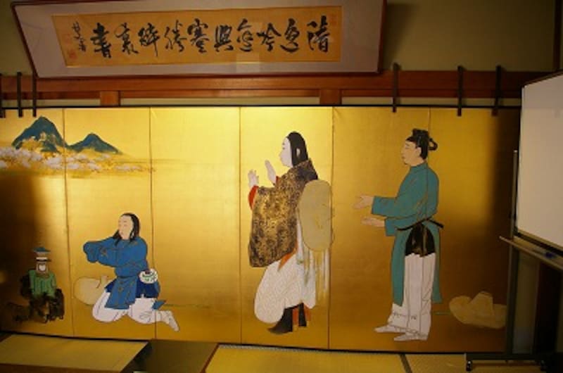 | 玉蔵院内にある、聖徳太子を描いた黄金の襖絵 |