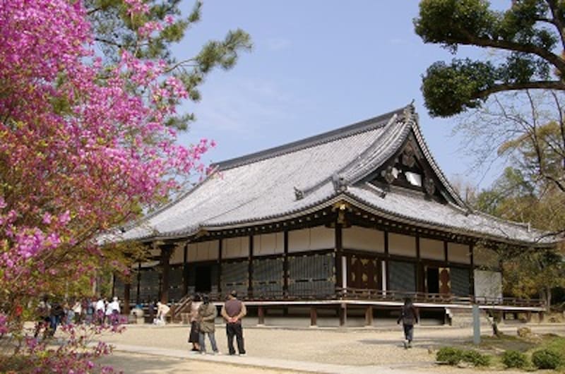| 朝のお勤めが行われる国宝、仁和寺本堂 |