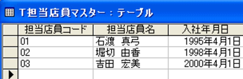 私は簡単に3項目しか作成しませんでしたが、店員のデータ管理も細かくしたければ、住所、電話などフィールドを増やしてください。![]()