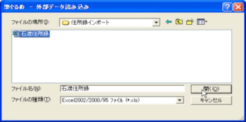 ファイルの場所と読み込むファイルを指定し、[開く]をクリック