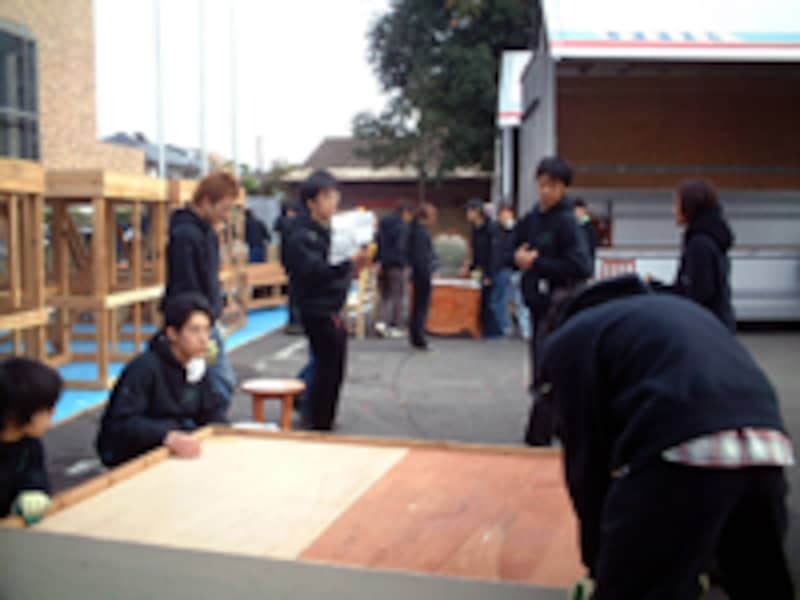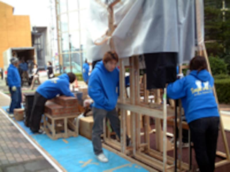 右 連盟委員長 赤塚亮太さん(一橋)左 慶応 英語會委員長 齋藤翔さん 戦場のような舞台裏 大会を支える役員たちトランシーバーを常に抱え、各所から届く報告に答えたり、問題発生に的確な指示を飛ばす赤塚さん。大会裏は戦場のようでした。日本一の努力が四大の魅力と語る赤塚氏「日本一の英語劇大会」といわれている四大学英語劇大会ですが、決してその座は確約されたものではありません。毎年連盟員の皆が「日本一」という名に恥じぬよう、日本一であり続けるため、死力を尽くした結果なのです。しかしこの「日本一の努力」が四大にある限り、四大学英語劇大会もまた日本一の大会であり続けるでしょう。この熱意こそが四大の魅力だと思います。そして僕は連盟委員長として、彼らの熱き思いに最高のマネージで応えたいと思います。また、この四大学英語劇大会にはとても多くの社会人の方々が関わっています。四大の OB や音響、照明の業者の方、スポンサーの方々、市民会館、そして地元住民の皆様などです。大会はこういった方々の暖かい支援にも支えられています。僕で68代連盟委員長なのですが、これからも連盟を存続・発展させていく為にもこういった方々への感謝や配慮を忘れないようにしたいです。各大学間の協力、友情を語る齋藤氏4つの団体がひとつになってこの大会を運営していくわけですが、各団体とも人数の構成も違えば、使えるお金なども違うわけです。そんな違った条件の中、どうしたら公平になるか話し合いを何度も重ね、この日が迎えられました。各団体が優勝杯を狙い戦っているわけですが、実際は、大会が成功するよう、どの大学も協力し合い力を合わせています。内藤美穂さん(津田塾大学)限られた時間の中で優勝杯争い「この大会は115分という各団体の持ち時間の中で、搬入から搬出までを終えないといけません。つまり、何もない状態から、セットを舞台の上に作り、演技をし、また何もない、きれいな状態に戻す、という過程を時間内におさめ、初めてグランドプライズという優勝杯を獲得できる権利が得られます。」と、説明してくださったのは、大会役員の内藤美穂さん。つまり、優勝のゆくえは、舞台の上で演技をする役者だけでなく、セットを作ったり、取り壊したりの作業をする会員ひとりひとりの手にもゆだねられています。誰一人として気を抜けないのです。限られた時間の中でいかに効率よく荷物を運び、役者たちが演技をしやすいようにセットを組み立て、取り壊し、釘一本落ちていない状態に戻すという作業を時間内におさめなければならないタイムリミット付きなのです。どうりで、緊張した雰囲気が会場周辺にはただよっていたわけです。どの団体も、搬入出や舞台セットの移動に無駄な時間を生じさせないよう、動くコースや舞台装置を運ぶ順番までをも考慮しなければならないのです。入念な練習が繰り返されていました。このセットを時間内に組み立てないといけません緻密な計算をしロスタイムをなくす入念な練習が必要さて、栄光を手にしたのは、どこの大学だったでしょうか?感動の授賞式の模様は 次の記事 にてご紹介いたします。* * * * * *<関連記事・コラム>感動の嵐!四大学英語劇大会(2)英語界の天才・杉田敏先生語るNHK講師大杉正明先生に聞く英語練習!相手の言葉を繰り返す【編集部おすすめの購入サイト】Amazonで英会話関連の書籍をチェック!楽天市場で英会話関連の書籍をチェック!前のページへ12※記事内容は執筆時点のものです。最新の内容をご確認ください。