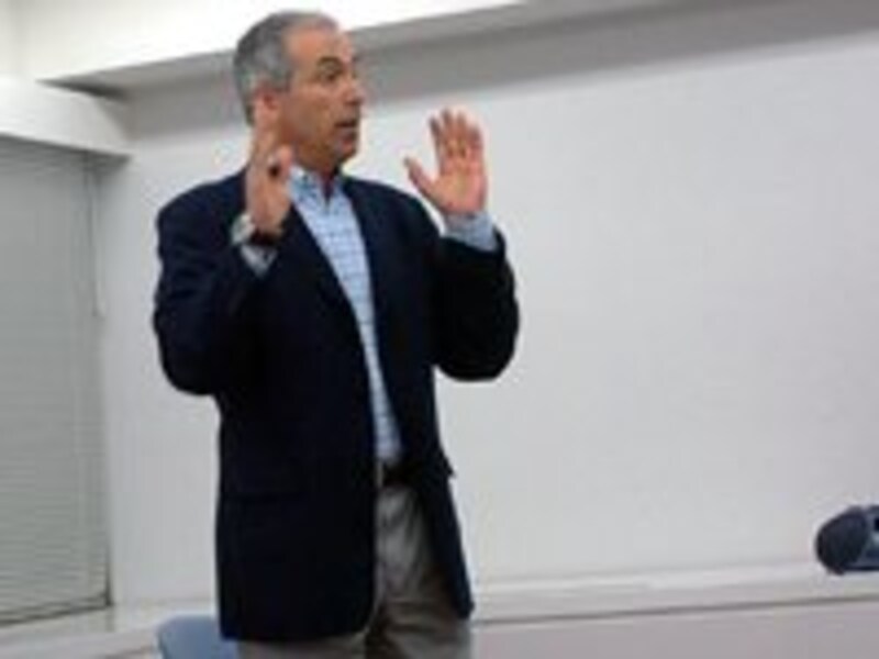 IntervieweeRoger Pulversロジャー・パルバース先生作家・劇作家・演出家東京工業大学教授翻訳の魅力 言葉の奥を見よ日本語にはいろいろな擬音がありますね。「ざわざわ」とか「さらさら」、あるいは、「ごうごう」、「ひゅーひゅー」など。それらが日本語に情緒を加え豊かな表現をかもし出しています。さて、英語にはそんな言葉はないのでしょうか?あります! 実は英単語の中には、いろいろな表情が隠されているのですよ。英単語の奥の深さを教えてくださったのは、作家、劇作家、演出家、そして東京工業大学教授という数々の才能を持つ ロジャー・パルバース先生 です。target="_blank">DHC教育事業部 と target="_blank">英語タウン の共同主催による英語セミナーへおじゃまさせていただきました。「どちらからいらっしゃいました?」「お仕事は何をしていらっしゃいます?」「今日はどうしてこのセミナーにいらしてくださいました?」セミナー開始前、流暢な日本語で、気軽に観客のひとりひとりの声をかけるロジャーさん。どんな人が参加しているのかを知ると同時に、観客の緊張感を解きほぐす、本物のプロだけがなしえる技です。翻訳の勉強をしている人には、またとない機会の素晴らしい講演でした。その一部をお届けします。聴衆に話しかけるロジャーさん熱心に耳を傾けるセミナー参加者次の単語をご覧くださいto toteto lugto haulto schlepどれも to carry「運ぶ」という意味合いをもつ単語です。これらの単語から、持っているものの重さと質がわかったら、あなたは立派な翻訳家です。通訳するときは、瞬時に訳さなければいけないので、「運ぶ」と訳してかまいませんよ。でも、翻訳となると別です。英英辞典と英和辞典を使って、これらの単語を調べてみましょうか?12次のページへ