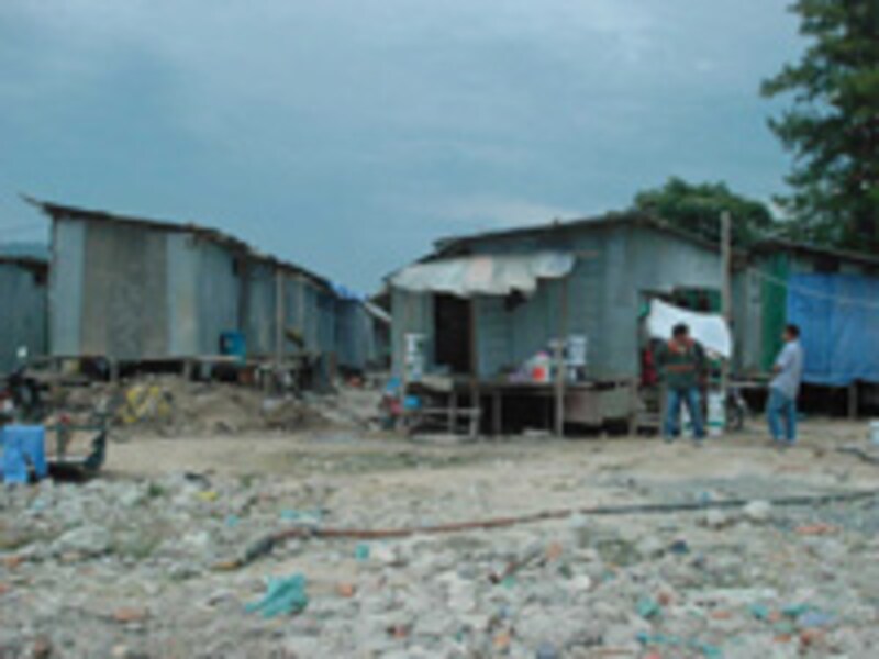 | プーケット島の建設現場職員用のそまつな住居。パンガー県で被災した移住労働者が職を求め、たどり着いた。復興の建設ラッシュの一方での過酷な現実だ。©シェア |