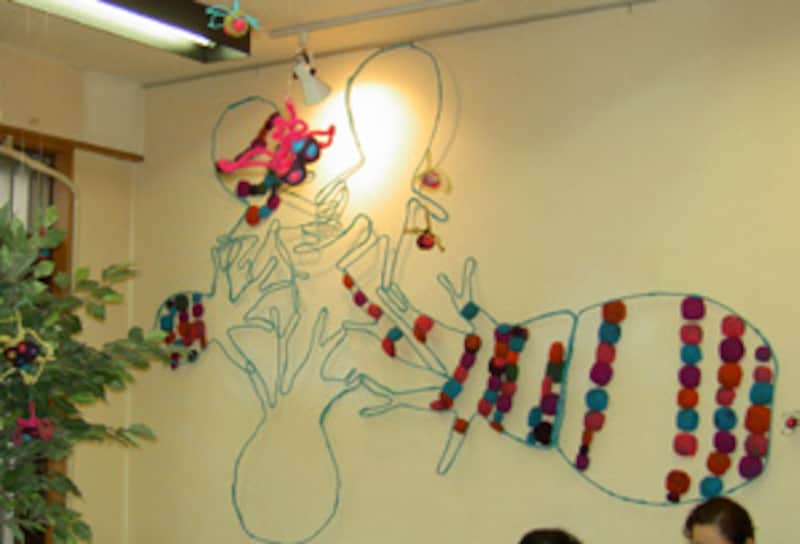 こちらはカフェの店内にかけられたオブジェ。ズバリ、花みずきだそうです。植物? ガイドにはなにやら不思議な生き物に見えて仕方がありませんでした。