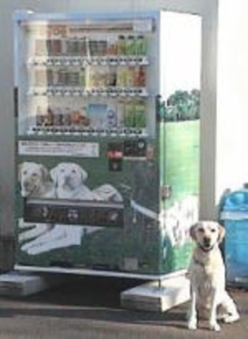 | ダイドードリンコ(株)関東支店が開発した盲導犬育成募金自販機。こちらは栃木県盲導犬センターに置かれているラッピングタイプ。©栃木県盲導犬センター |