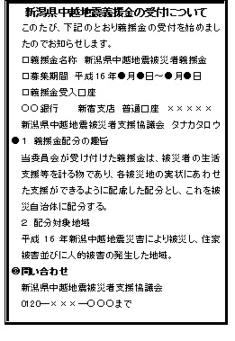 ほかにも○○救援会、○○救済協議会、○○募金会などのそれらしい団体名を名乗っては、義援金や募金を呼びかけるケースは後を絶ちません。
