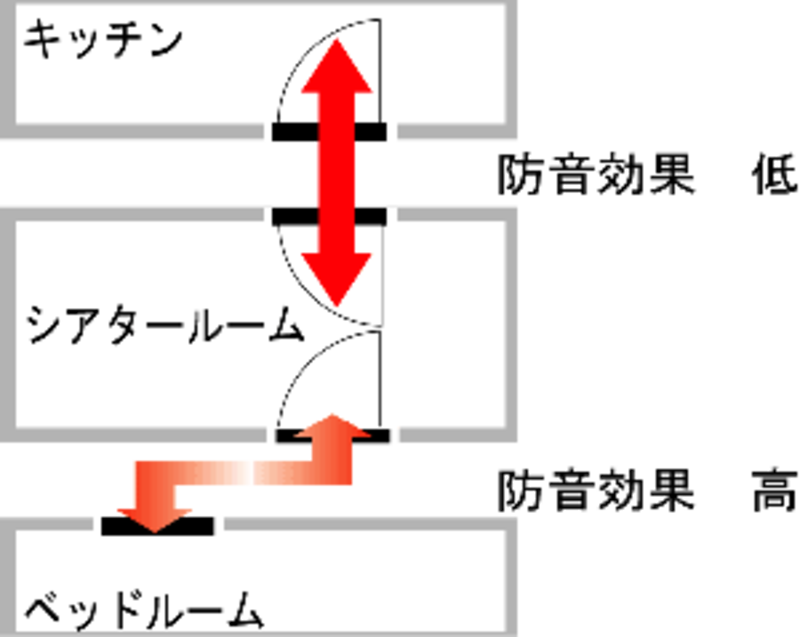 音の漏れやすい部分を互い違いにすることで、音が伝わりにくくなります。