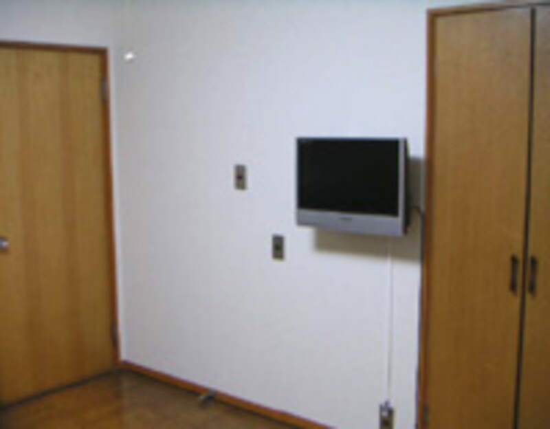 従来のブラウン管テレビ使用状態と比べると、液晶テレビの「壁掛け」で、こんなにスッキリ!
