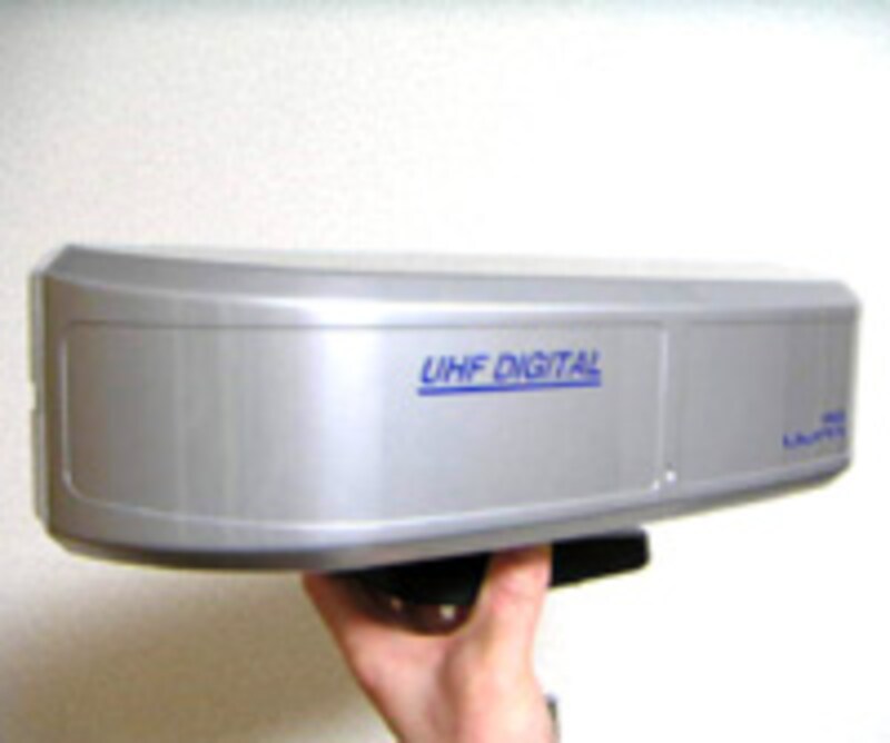 筆者の自宅は、まさにこのケース。 従来のアナログ放送を簡易的な室内アンテナで視聴すると、飛行機が通る度に映像がゆがんだり、2重映りするので、屋外アンテナを利用していましたが、地上デジタル放送は、写真の室内用アンテナ(日立国際電気 UWPA/実売価格は約5,000円)で、必要充分な電波が受信でき、映像は常時クリア。 アンテナケーブルを隣りの部屋から引き回さずに済みました。