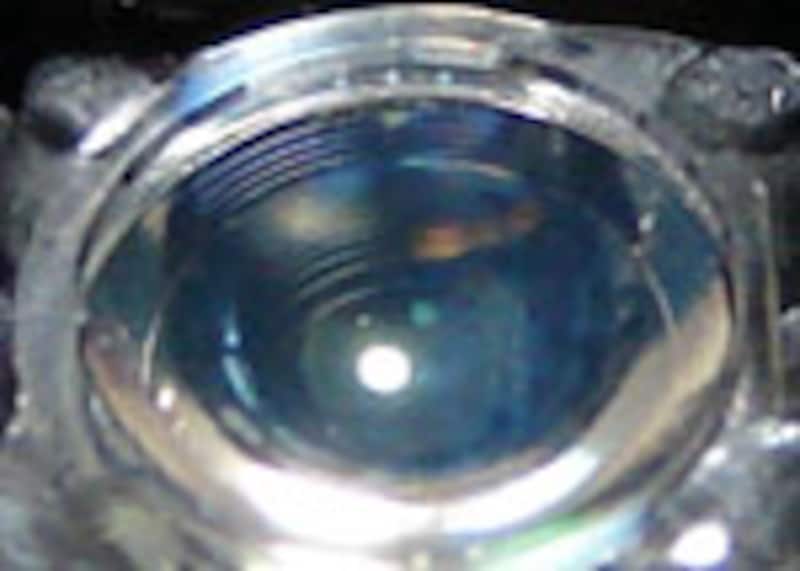 ■クリーニングの仕組み DVDを再生するだけで、レンズのホコリや汚れを落とせるのは何故か? 不思議に思われる方も多いでしょう。 写真のように、DVDから「毛」が生えているような仕組みになっていて、この「毛」がレンズ(ピックアップ)の上を通過する際、レンズをクリーニングしてくれるという訳です。 <クリックして拡大> |