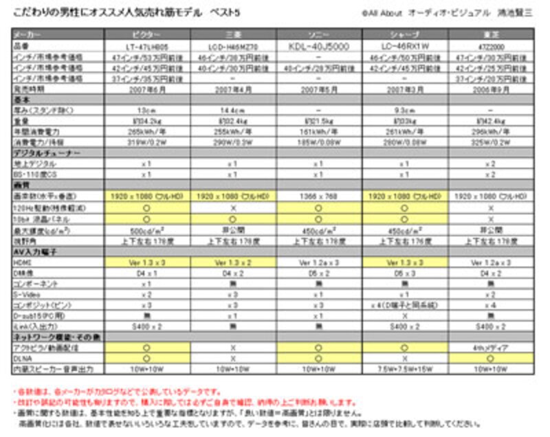 2007年夏、こだわりの男性にオススメ人気売れ筋モデル ベスト3 比較一覧表