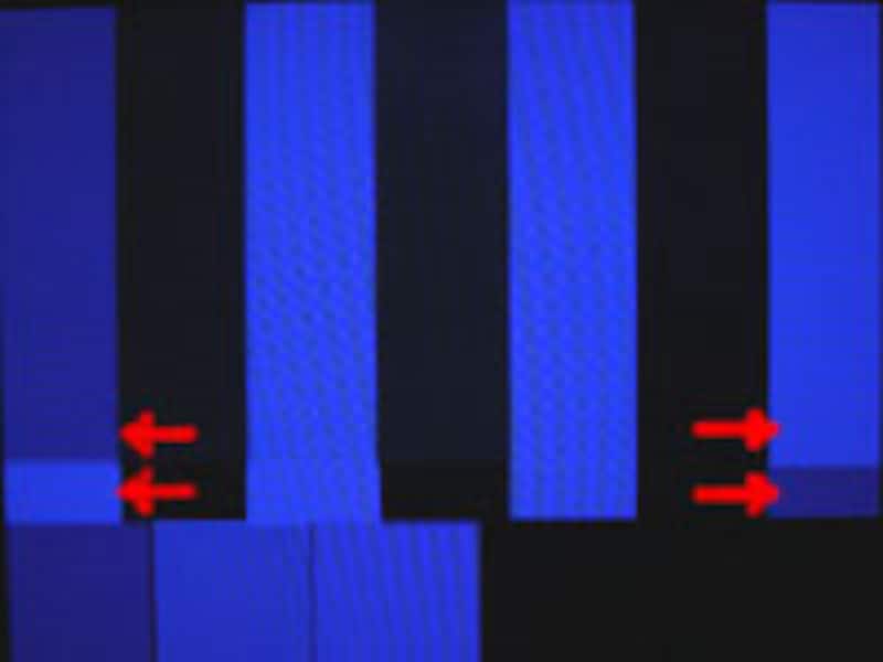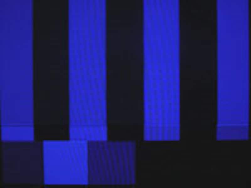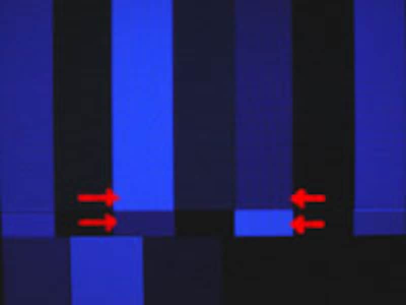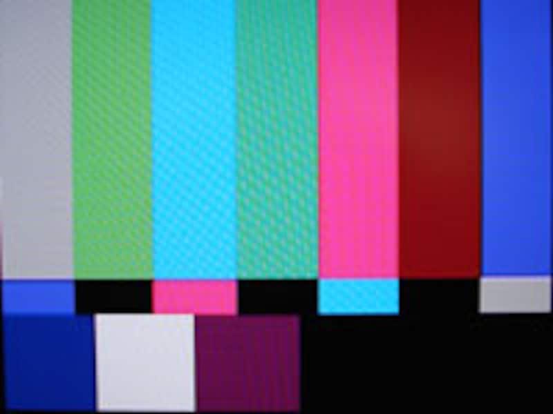ブルーフィルターを通した見た際、明るい縦の線(4本)の明るさが均等になるよう、テレビのツマミ(色の濃さ/色合い)を調整します。