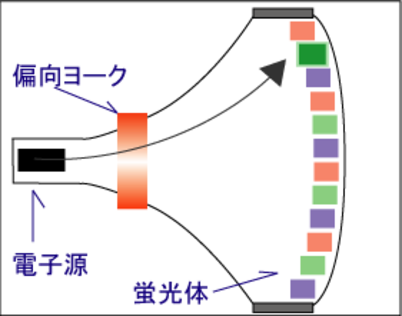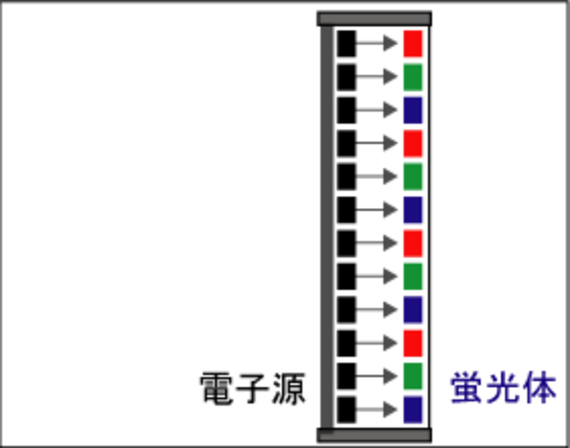*上の図は、表示方式の違いを現すイメージ図です。 電子源および蛍光体の数や配置は、実際と異なります。