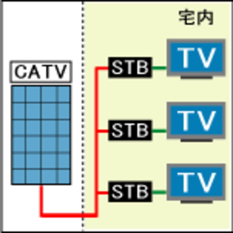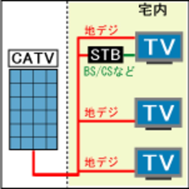 まず、テレビの受信方法には、戸別にアンテナを設置する方法とケーブルテレビ(有線)があり、さらにケーブルテレビにはいくつかの方式があります。