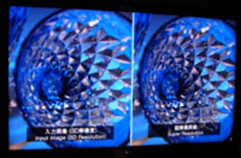 日立の場合、まだ、具体的な解像度向上の手法が明かされておらず、デモンストレーションも、素材や使用している機器が不明です。 よって、詳細は抜きにして、まずはデモ映像の写真(静止画)をご覧ください。