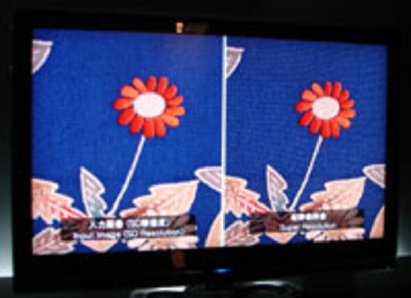 日立は、「超解像」技術を搭載したテレビなど、未だ具体的な製品化を発表していませんが、CEATEC2008会場でのデモンストレーションには、力が入っていました。