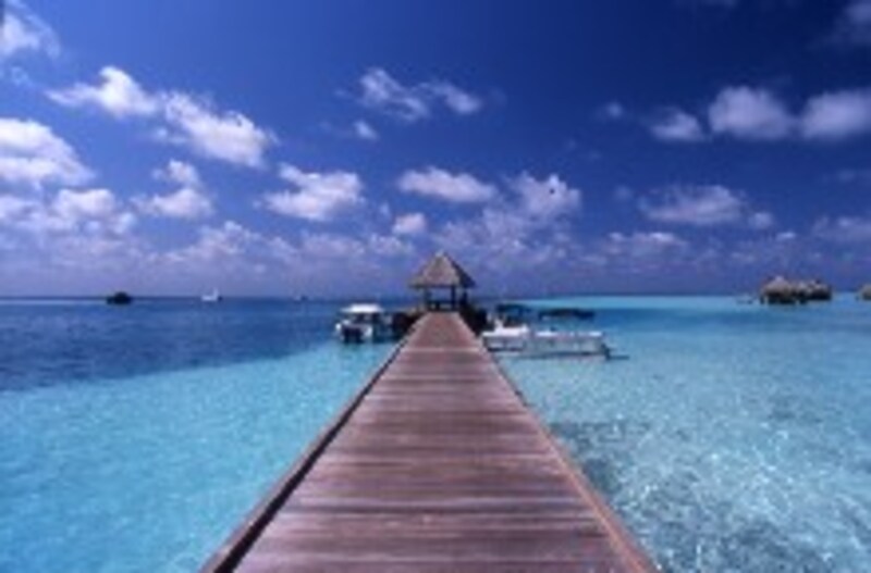 | 島から見た桟橋の風景。遠浅のラグーンはまばゆいばかり |