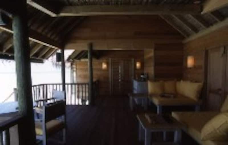 | ヴィラスイートのリビング。海に向かったオープンな造り |