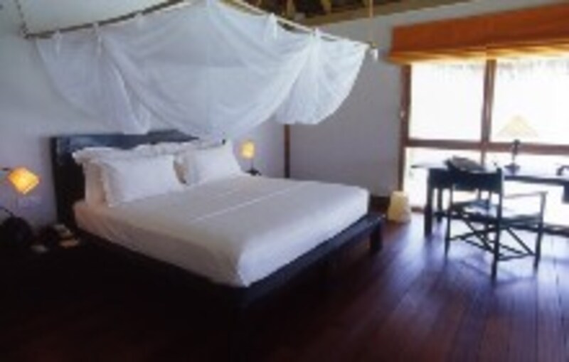 すべて独立型で、客室間の距離もたっぷり。しかも、最上位クラスのソネバギリ・クルーソーレジデンスにいたっては、ポツリと水上に独立していて(桟橋で陸とつながっていないのです)、部屋からの移動はすべてボートを呼ぶといったプライバシーの確保の高さ。驚きです。