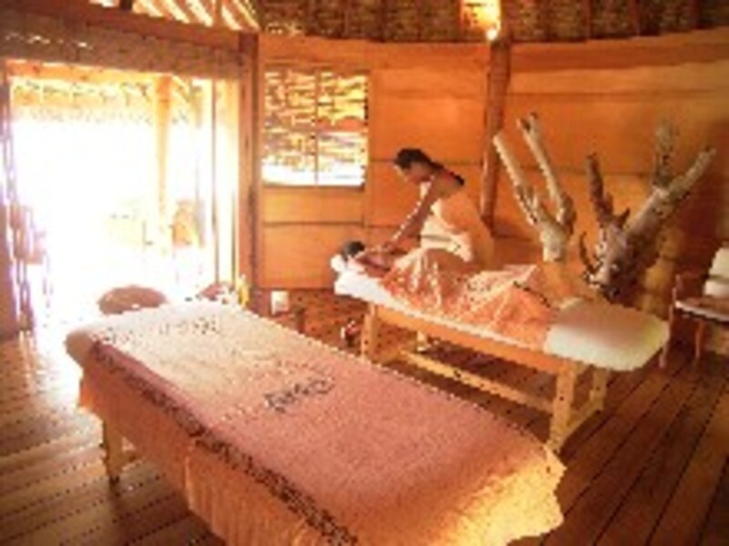 ダブル1室、シングル2室、ビシシャワーなどのラグーンに突き出したようなトリートメントルームに加えて、オンザビーチやラグーン内にベッドを置いて施術を受けることも可能。海の中でトリートメント、波の音に包まれて、ロマンチックですね。