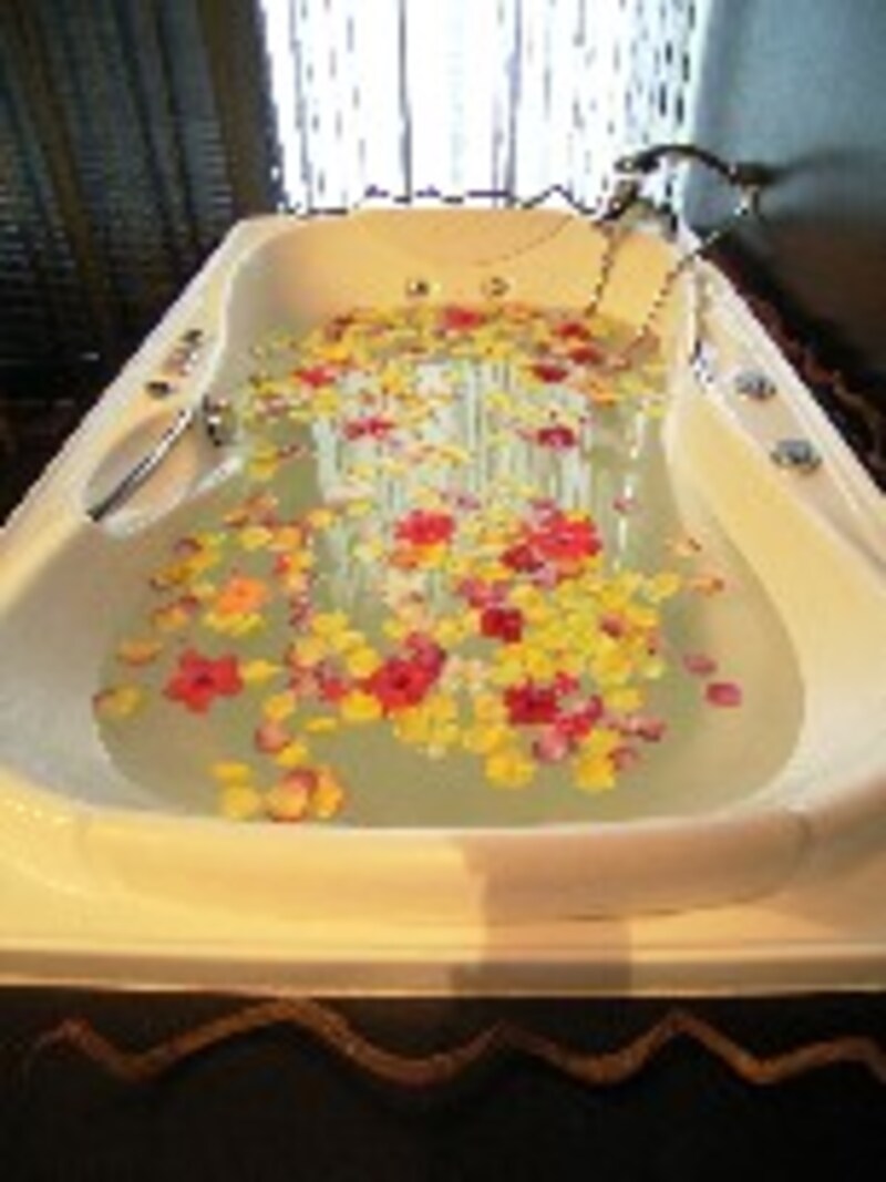 | 施術後のフラワーバスは、バニラやココナッツの甘い香りの中、余韻に浸れる |