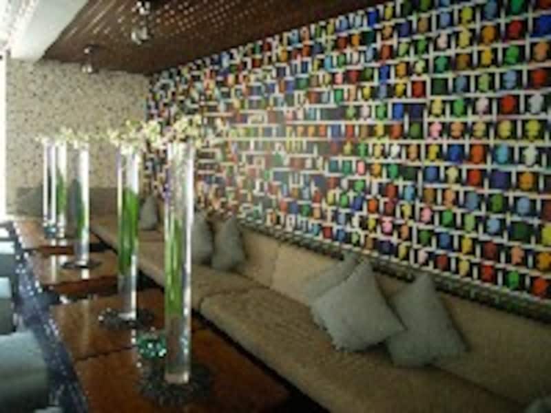 ブッダが一面にプリントされたダイニングのコンテンポラリーな雰囲気も魅力です。