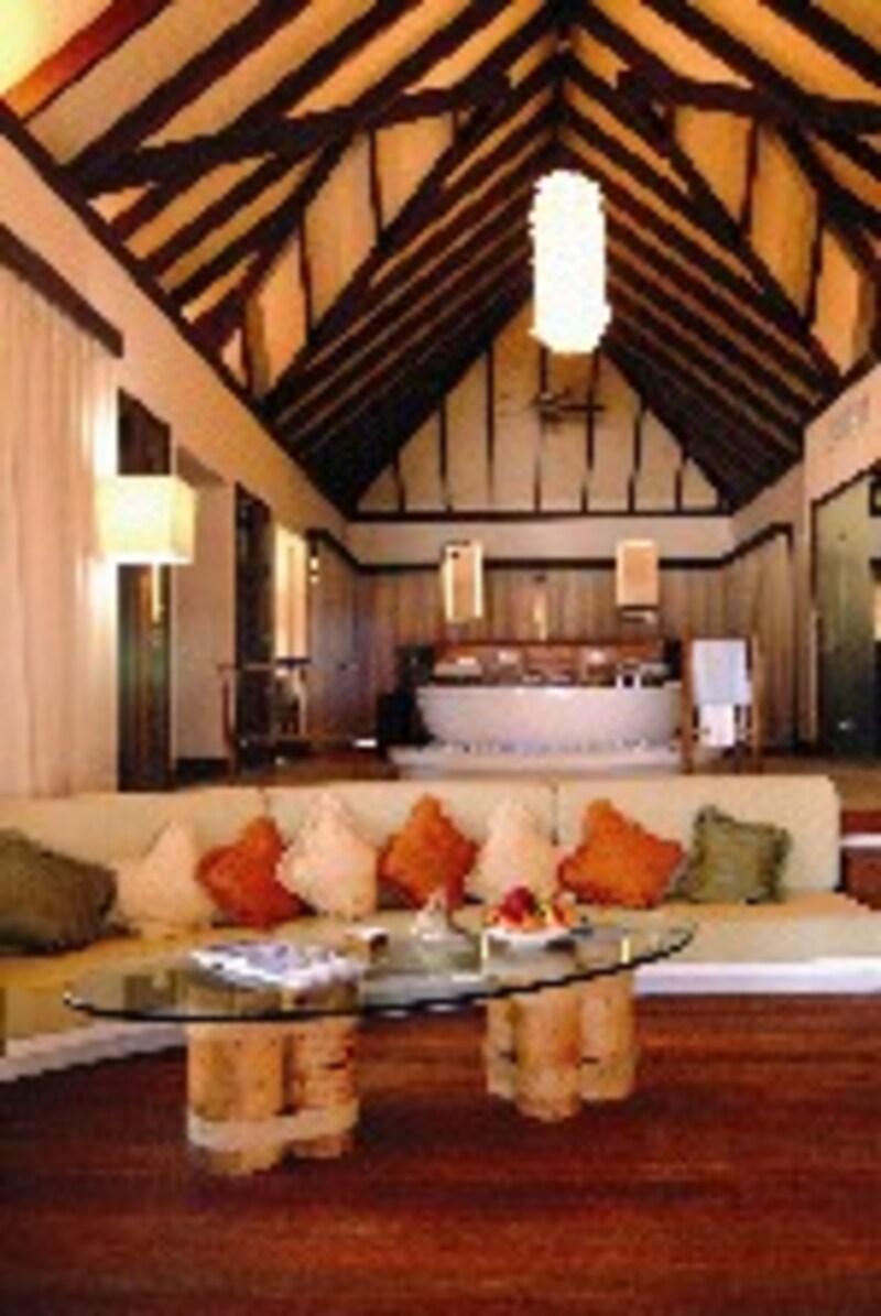 188平方メートルのゆとりあるアイランド・ヴィラ(44室)は部屋の真ん中に置かれた大きなバスタブが特徴。DVDやフラットテレビ、エスプレッソ・マシーンなど、最新の装備を整えています。