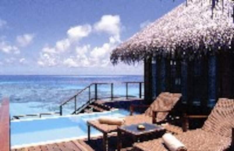 | ゆったりくつろげるデッキテラスを置いたウォーター・ヴィラ |