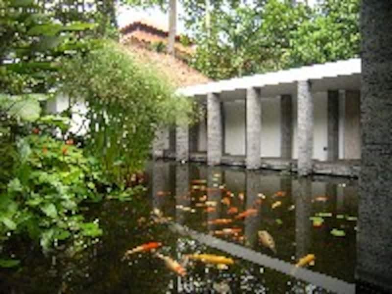 | 鮮やかな錦鯉が泳ぐスパの池 |