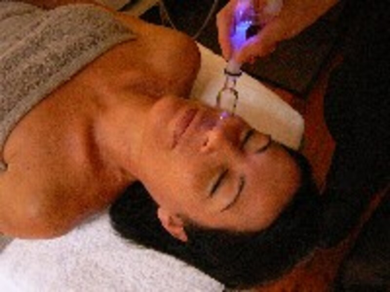 | フェイシャル。色ごとに決まったツボに光をあてます。 |