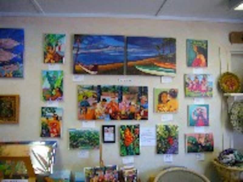 モロカイのアーティストの作品を扱うギャラリー。約80人の画家や工芸作家の作品やTシャツなどが展示されています。もちろん、購入することもできます。Anna Fuensteinerさんの絵画が人気。