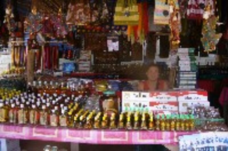 | ラオスの露店。蛇の入ったお酒らしきものも |