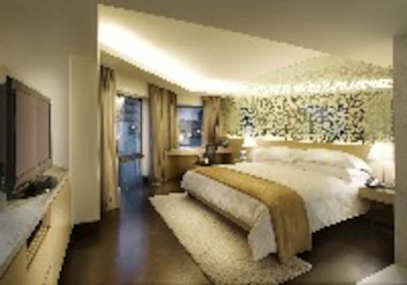 このホテルの特徴はパーソナルサービス。24時間のルームサービスや無料のインターネットアクセス、i-Podも装備されています。CISCOという電話はタウン情報も得られるスグレもの。冷蔵庫のサイズは大きく、ミニバーも無料。そして、ベッドは柔らかなグースフェザーのデュベが心地いいスペシャルカスタマイズ。気持ちいい眠りが期待できそうです。