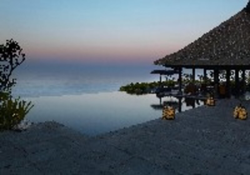 崖に面して位置するラウンジバー。おすすめは、サンセット・タイムです!大きなデイベッドに横たわり眺めるインド洋は、茜色から濃紺へとゆっくり色を変え、まるで壮大な自然絵巻のよう。このシートはぜひ、確保したいところです。