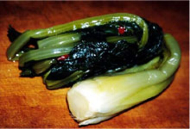 | 民宿湯沢で食べた野沢菜漬本漬け |